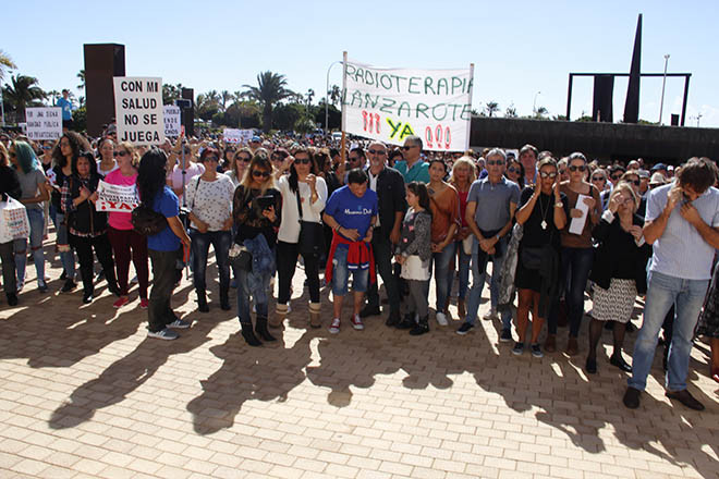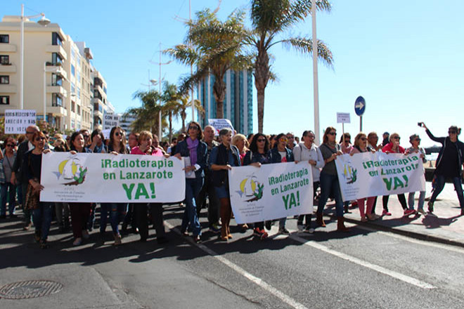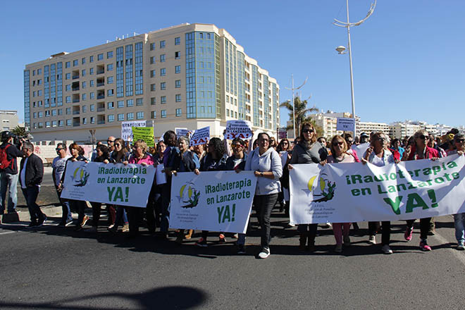 “Traslados no, radioterapia aquí”, ha sido el lema más coreado en la manifestación por la implantación del servicio de radioterapia en Lanzarote. Miles de personas, unas 5.000 según la Policía Local, han participado este sábado por la mañana en la manifestación convocada por Afol, la asociación de familias oncohematológicas de Lanzarote.