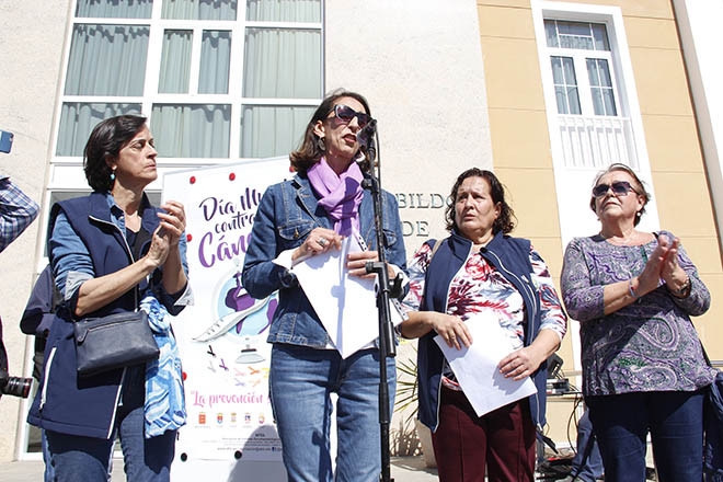 La presidenta de Afol, Carmensa Arrocha, visiblemente emocionada, se refirió en varios momentos durante la lectura del comunicado de la manifestación de este sábado para que se implante una unidad de radioterapia en Lanzarote, a la escasa implicación de la clase política de la Isla para reivindicar un servicio de radioterapia, así como al gasto de dinero del Gobierno de Canarias en la sanidad privada.