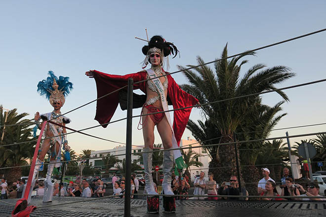 En el desfile participaron 13 murgas, 4 batucadas, 2 comparsas, 5 agrupaciones del carnaval y 18 carrozas, entre ellas, la de la Reina Infantil y las Drag Queens, que desfilaron junto a miles de mascaritas al son de la música carnavalera desde las inmediaciones del Sands Beach Resort hasta el Pueblo Marinero.