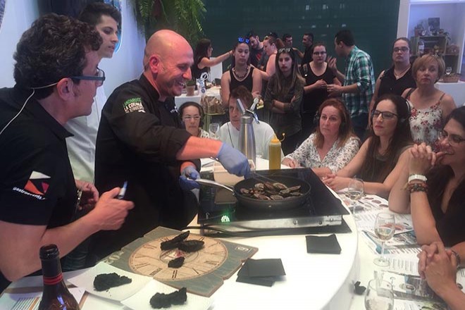 En el stand de Lanzarote, los chef Rafa Parro y el propio Dailos Perdomo han sido los encargados de ofrecer las ponencias del día. Parro, de El Olivo (Playa Blanca), ha presentado unas 'Lapas de Lanzarote con espuma de batata y plancton con rocas volcánicas de calamar'. El chef del Hespérides ha elaborado en esta ocasión un 'Tartar de gambas de La Santa, huevas encapsuladas y mermelada de limón'.