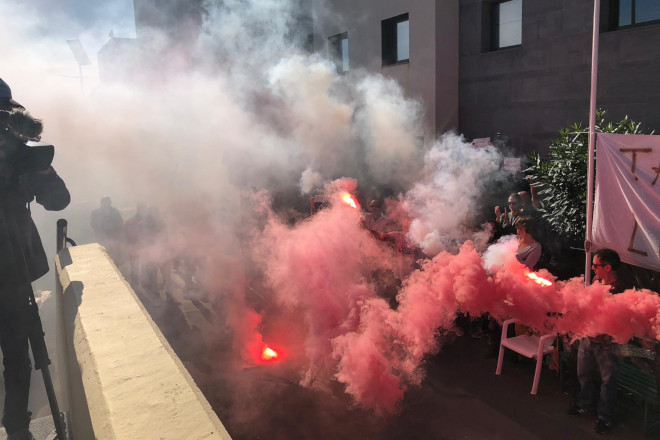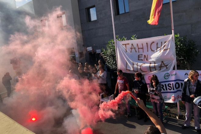 "Tahíche en lucha": acampada y bengalas para reivindicar al Gobierno que acabe con la "brecha salarial" de los funcionarios