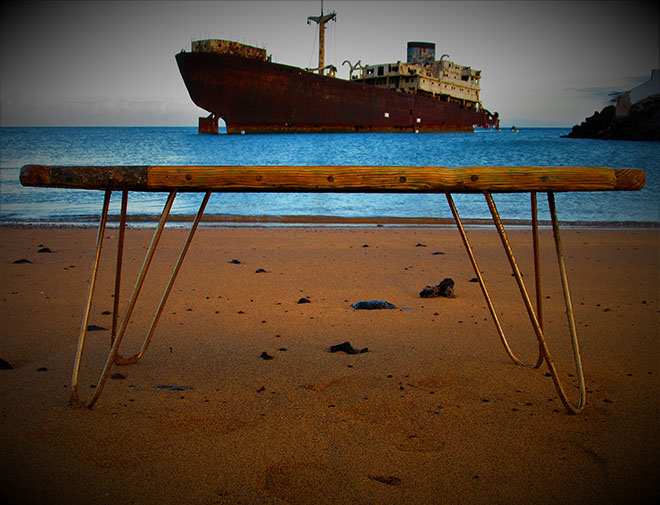 Andrés procede de familia española, exiliada durante las Guerras Carlistas. En Lanzarote parece haber encontrado un lugar para su técnica, que él define como “devolver al lugar una parte de su historia”. “Partiendo de la premisa de proponer una nueva opción o tendencia de mobiliario, tanto de interiores como de exteriores, nace la idea de devolver al lugar, por medio de la decoración, parte de su historia, en este caso visual, reutilizando, reciclando y dando una segunda vida a materiales nobles, como maderas y hierros que se utilizaron para la construcción en puertas, ventanas, molduras, escaleras, balcones o rejas y conservando a la vez sus colores, tan destacados en la Isla como sus verdes y azules”, explica el carpintero.
