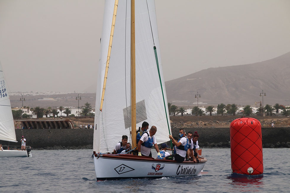 Isla de Lanzarote, patroneado por Emilio Tavío, y Volcán de la Corona Grúas San Ginés, con Ángel Delgado a la caña, fueron los que protagonizaron una mejor salida, aunque la estrategia de ir cerca de tierra no les salió nada bien. Más viento soplaba por la parte derecha del campo de regata, situación de la que se aprovechaban el resto de barquillos, menos el Maramajo que se vio muy penalizado al no poder contar con una vela de mayor tamaño.