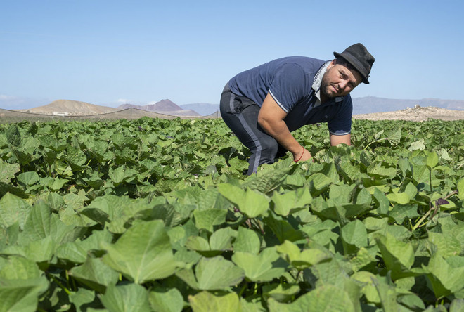 Él empezó arrendando dos fincas y trabajándolas solo, incluso por las noches. Hoy tiene tres personas en plantilla y un contrato con una comercializadora para distribuir los productos de su explotación agrícola Las Canelas. “Nos dedicamos al tomate, el calabacín y la batata y los mantenemos todo el año en el mercado, sin parar un solo mes”.