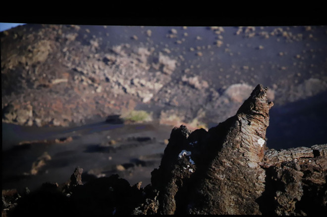 No es un documental al uso. Hay imágenes, es verdad, pero lo importante no se ve, se escucha y se imagina gracias a un montaje en sonido envolvente inmersivo 7.1. Como el viento, que suena de todas las maneras posibles en las rocas volcánicas como la sombra sonora de antiguas explosiones. O el mar, siempre presente. Estas “geofonías” de lo exánime se entremezclan con los sonidos vivos, las biofonías, de las aves, pero también las voces de los hombres y mujeres que han modelado este paisaje, geográfico y al mismo tiempo sonoro.