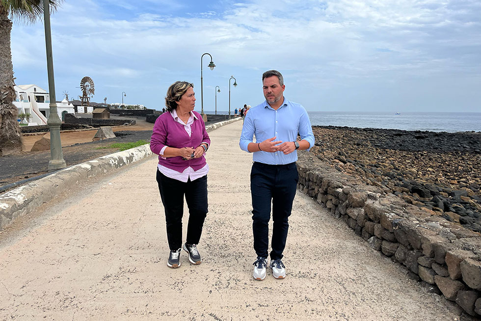 Jacobo Medina visitó recientemente la zona junto a la teniente de alcalde y concejal de Playas y Turismo de Teguise, Rita Hernández, para comprobar en primera persona el estado actual del paseo.