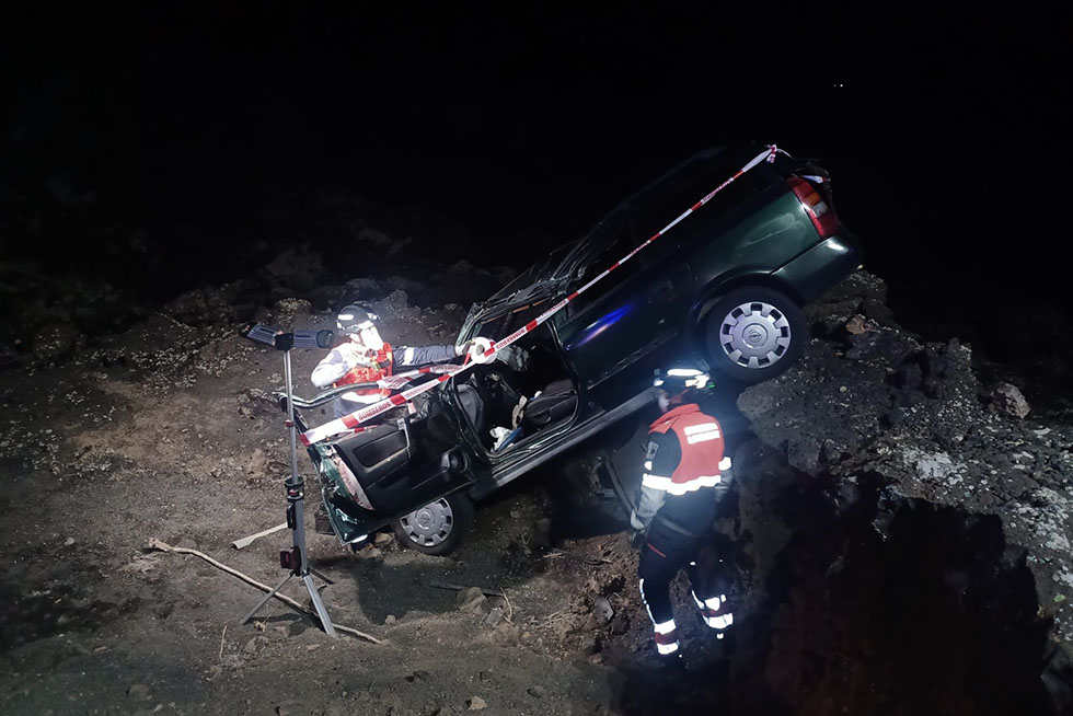 Efectivos del Consorcio de Seguridad y Emergencias de Lanzarote intervinieron en la madrugada del lunes en un accidente de tráfico, con una persona atrapada, ocurrido en la carretera LZ-30, en la zona de Masdache, en La Geria.