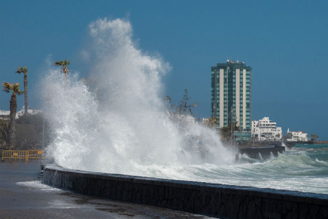 El litoral de la ciudad ha registrado daños por la fuerza del oleaje, sin embargo, la lluvia, a esta hora de la tarde, no ha caído en los porcentajes que la AEMET, la Dirección General de Emergencias del Gobierno de Canarias, y el Consorcio de Seguridad de Lanzarote habían pronosticado.
