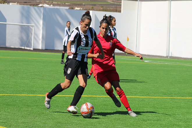 Se vieron los mejores minutos del equipo visitante sobre el terreno de juego, encontrando la recompensa del gol por medio de Eva Sánchez. El FC Puerto del Carmen tuvo varias ocasiones por medio de Janet o Eva Sánchez, no definiendo en los metros finales. También a balón parado generaron mucho peligro, no estando acertadas en el remate.