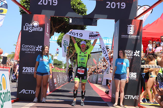 En lo que se refiere a las féminas, tras realizar un tiempo de 54 minutos y 55 segundo en el agua, Maja Stage Nielsen se vio superada en la bicicleta por Bartlett quien ya no perdería tampoco la primera posición en las tres vueltas al circuito de la Maratón comprendido entre Playa Honda y la Avenida de las Playas de Puerto del Carmen.