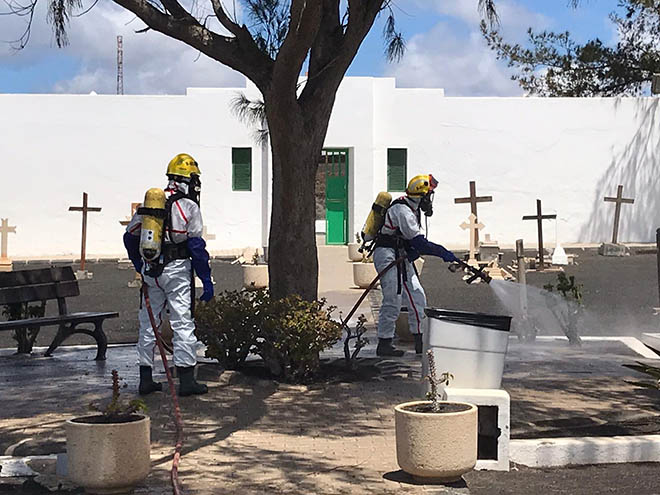 La presidenta del Cabildo, María Dolores Corujo, ha informado de que a lo largo de este domingo se ha continuado con el programa de desinfección de farmacias actuando en siete de ellas, localizadas en el municipio de Arrecife, y en el cementerio de Tías ante el aviso de que iba a tener lugar un sepelio.