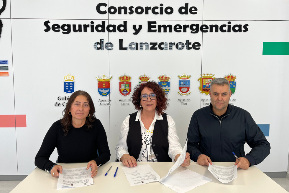 En la rúbrica del acuerdo estuvieron presente el presidente del Consorcio de Seguridad y Emergencias de Lanzarote, Francisco Aparicio; la consejera de Educación del Cabildo de Lanzarote, Ascensión Toledo; y la directora del IFPMP, Carmen Déniz.