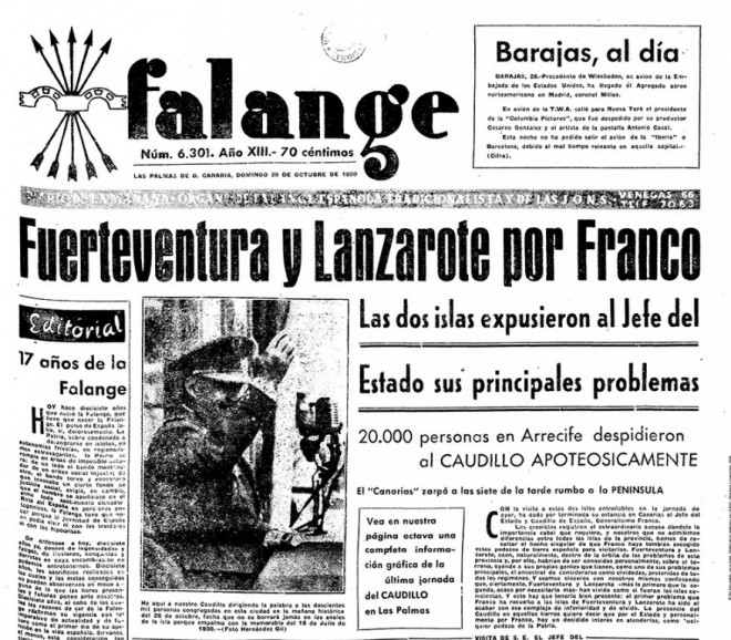 1950. La larguísima y dura posguerra continuaba azotando a Fuerteventura y Lanzarote, dos ínsulas que se habían ganado una merecida fama de territorios malditos en siglos anteriores, pero que alternaron sus épocas de penurias con pequeñas coyunturas de modesta prosperidad. A mediados del siglo XX, el aislamiento, la pobreza, el caciquismo o la perenne sequía alejaban cualquier conato de bonanza, aunque una esperanza brillaba a final de ese año: la visita de Franco.