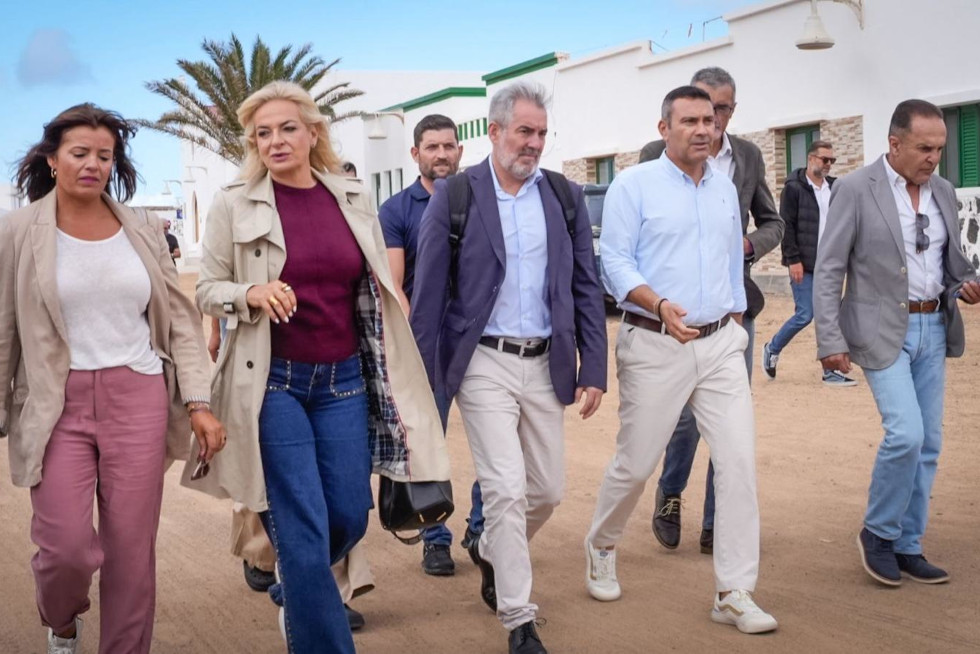 El jefe del Ejecutivo, acompañado del consejero de Política Territorial, Cohesión Territorial y Aguas, Manuel Miranda, y la directora general de Aguas, Mónica Curiel, así como, por el presidente del Cabildo de Lanzarote, Oswaldo Betancort, y la alcaldesa de Teguise, Olivia Duque, recordó que el Gobierno se marcó como objetivo estratégico dotar a La Graciosa de un sistema integral de gestión del ciclo del agua.