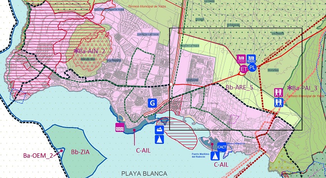 Es el caso de la franja de más de 2,2 millones de metros cuadrados que el PIO define al norte de Playa Blanca, desde la punta de la urbanización Las Coloradas, hasta el otro extremo de la carretera de acceso a la localidad sureña.
