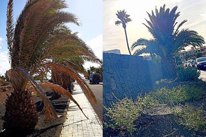 "Comprobarán el mal estado del palmeral, con numerosos ejemplares desmochados, enfermos o con sus hojas sin podar, secas y canelas, que invaden las aceras por donde caminan residentes y turistas, ofreciéndose gratuitamente un aspecto alejado de lo que se merece un núcleo turístico y residencial puntero", manifiesta Marcos Bergaz.