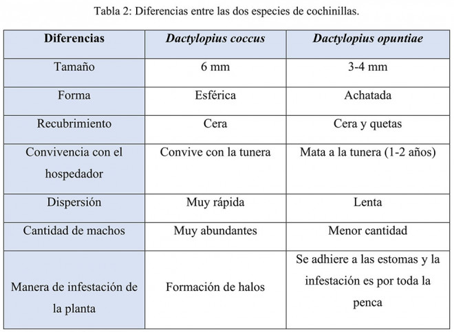 Tabla en la que pueden apreciarse las diferencias entre las dos especies de cochinillas realizada por la autora del TFG.