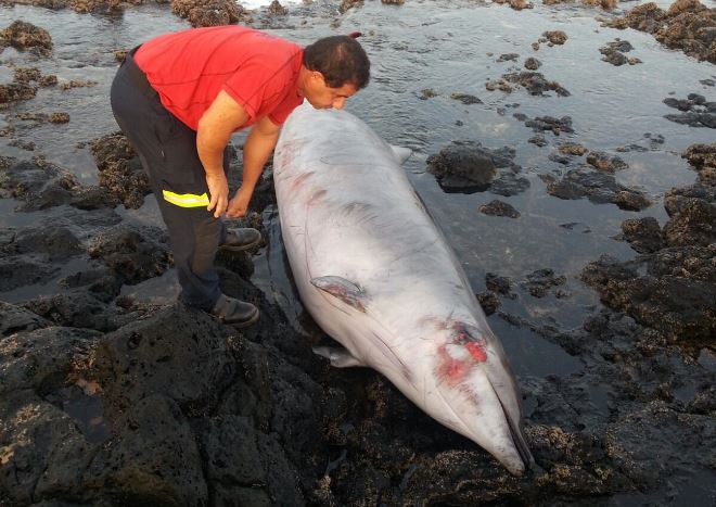 El zifio, una hembra de unos tres metros y medio, apareció herido en una zona de difícil acceso y terminó falleciendo.