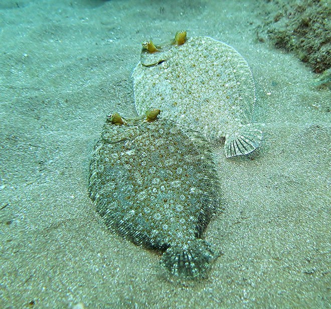 Quietos, sobre el fondo arenoso está el discreto tapaculos, un pez plano, de cuerpo aplastado, que vive adherido a la arena y cambia de color para mimetizarse con el color del fondo e intentar pasar desapercibido. Si nadamos hasta el islote de Fermina, en la zona rocosa, veremos muchas más especies bajo el agua. “Tenemos la gran suerte de tener muchas playas de fácil acceso, buen estado de la mar y aguas cristalinas para realizar esnórquel”, explica. En otras playas de fondos arenosos como Playa Honda o las de Puerto del Carmen (desde Playa Chica hasta Playa Grande) también se pueden ver pejepeines, un pez muy activo, que se alimenta de pequeños invertebrados y que se entierra en la arena cuando se siente amenazado.