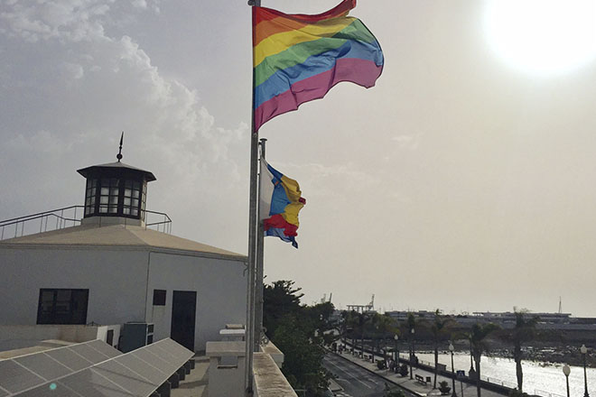 La bandera LGTBI ondea desde esta mañana en la fachada del Ayuntamiento de Arrecife junto a las oficiales.