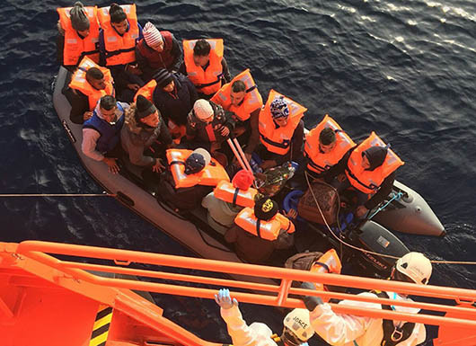 A la zona se ha desplazó la Guadamar Polimnia, cuya tripulación procedió al rescate de los 17 ocupantes de la patera, en aparente buen estado de salud.