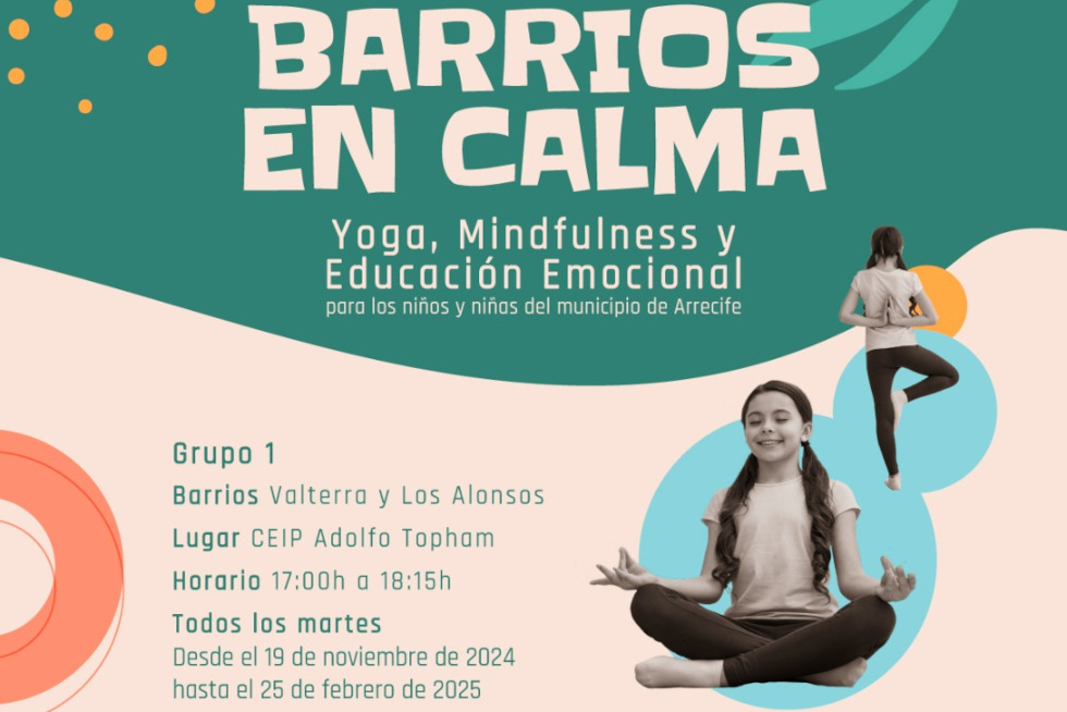 Barrios en Calma forma parte del programa Chinijos en Calma, cuyo objetivo es crear entornos seguros y tranquilos para los más pequeños de la ciudad. Esta iniciativa está financiada íntegramente por el Área de Cultura y cuenta con actividades gratuitas, diseñadas específicamente para niños y niñas de entre 6 y 8 años. Las sesiones están a cargo de Malena García Díaz, instructora de yoga, mindfulness y educación emocional para niños y familias.