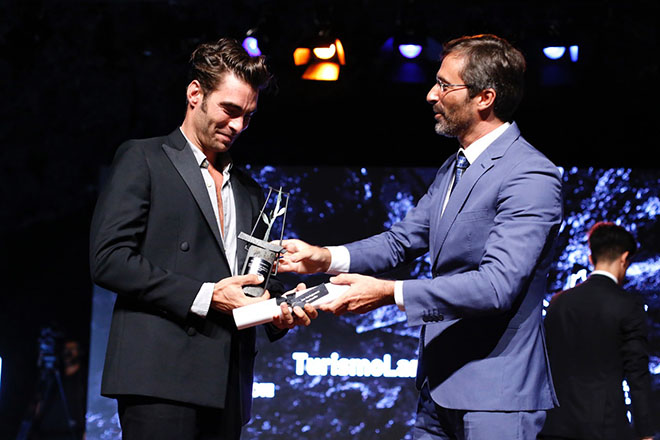 Asimismo, uno de los principales protagonistas de la noche fue el modelo Jon Kortajarena, quien recibió de manos del presidente de la primera Corporación insular el galardón Distinguido del Turismo, en el apartado de Personalidad. El modelo bilbaíno, que tomó la palabra para agradecer en nombre de todos los premiados los distintivos recibidos, posee una vivienda en Lanzarote y difunde en sus post, a través de las redes sociales, la actividad que realiza durante sus estancias destacando las bondades de la Isla de Volcanes.