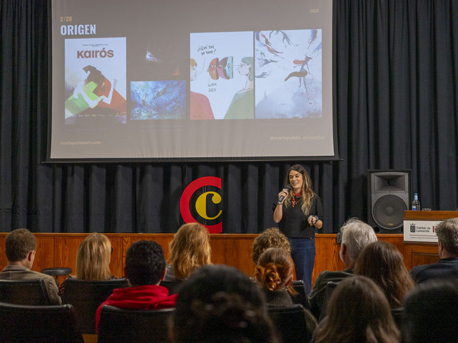 Uno de los momentos centrales fue la intervención de María Pulido, directora de arte de la película Mariposas Negras, galardonada con el Premio Goya, quien expuso su experiencia profesional en la industria y subrayó la importancia de la especialización técnica en producciones internacionales.