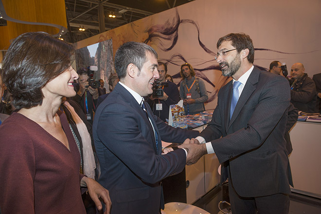 Después de fotografiarse con los presidentes de los siete cabildos y otras autoridades, Clavijo realizó el habitual recorrido por el stand del archipiélago. En el de Lanzarote fue recibido por el presidente del Cabildo, Pedro San Ginés, que, en clave turística, apostó "por que Fitur 2016 sirva para seguir avanzando en la recuperación y dinamización del turista nacional, por un lado, y en la mejora de la conectividad aérea, elemento clave para un destino insular como es Lanzarote, por otro".