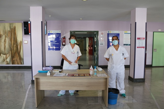 Así mismo, en las entradas del Hospital se han instalado mesas informativas donde una auxiliar de enfermería enseña e indica a los usuarios cómo hacer una higiene de manos adecuada, además de proceder a la entrega mascarillas y explicarles cómo deben colocársela. También se facilita un díptico informativo y se toma la temperatura a todas las personas que accedan al recinto hospitalario.