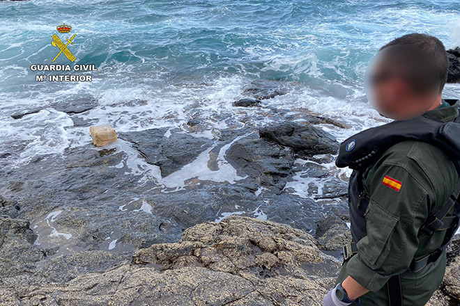 Además, debido al efecto del viento y la marea, la Guardia Civil de Tarajal en Fuerteventura y Costa Teguise en Lanzarote intervino otros dos paquetes de similar peso y tamaño en la zona de costa.