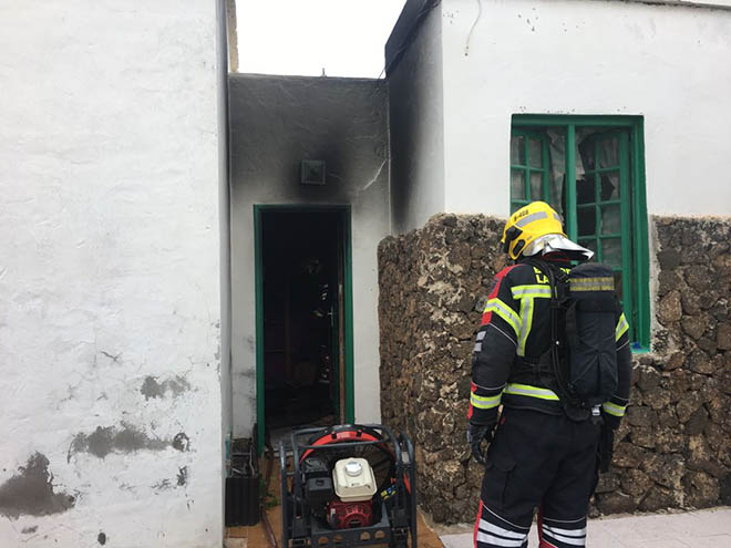 Los bomberos apagan un incendio en una vivienda de Costa Teguise