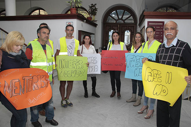 Una docena de comerciantes que pertenecen a la recién creada 'Asociación de comerciantes de la zona centro' han asistido este martes por la tarde a la sesión plenaria del Ayuntamiento de Arrecife para protestar por la marcha de las obras de la Avenida.