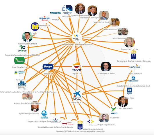 No ha descubierto nada nuevo, pero el mapa ha conseguido organizar la documentación y convertirla en un gráfico que ofrece una visión de conjunto y de fácil acceso. Las conclusiones las deben extraer los usuarios, pero hay datos que evidencian “una gran concentración empresarial y de poder” y una tendencia muy habitual a la ‘puerta giratoria’. Como ejemplos, Raúl menciona al diputado socialista y exconsejero del Gobierno de Canarias, Blas Trujillo, que ahora “forma parte del Consejo Asesor de Endesa en el archipiélago”, compartiendo mesa con el exconcejal del Partido Popular, Mario Romero Mur. El actual alcalde de Las Palmas, Juan José Cardona, fue consejero de Santana Cazorla, “un grupo empresarial implicado en el Caso Salmón”, y la exviceconsejera de Turismo, Pilar Parejo, “fue consejera en una sociedad hotelera junto con grandes empresarios canarios como Antonio Plasencia o Juan Fuentes Tabares”.