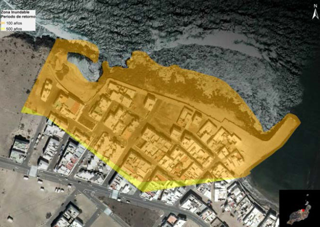 En Los Cocoteros, estarían en riesgo las dos calles más cercanas al mar; en La Santa, la mitad del pueblo; gran parte de Caleta de Famara en el entorno del muelle; una pieza de Caleta de Caballo y la primera línea de Caleta del Sebo, en La Graciosa, del muelle hacia el este.