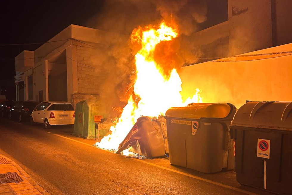 La primera alerta del Centro de Coordinación de Emergencias (Cecoes) llegaba poco antes de la medianoche avisando de que un contenedor se encontraba ardiendo en la calle Guatemala de Arrecife.