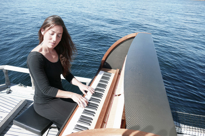 La pianista francesa Marieke Huysmans-Berthou viaja en su velero con su piano para ofrecer conciertos y grabar discos en cada puerto de destino