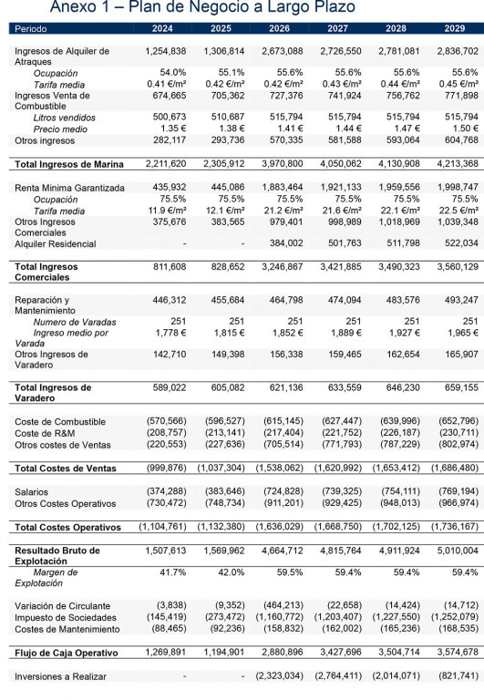 La empresa sostiene en su plan de negocio que no tiene previsto volver a ceder ni amarres, ni locales ni apartamentos