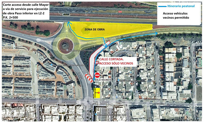 La Consejería de Obras Públicas, Vivienda y Movilidad del Gobierno de Canarias, a través de la Dirección General de Infraestructura Viaria, que dirige Rosana Melián, procederá a realizar, el próximo miércoles, 25 de septiembre, el cierre de la calle Mayor hacia la vía de servicio dirección Arrecife, que discurre de forma paralela a la LZ-2, para continuar con los trabajos de urbanización desarrollados en el marco de las obras de construcción del nuevo paso inferior bajo la LZ-2, P.K. 2+500, para mejorar la conectividad de la localidad lanzaroteña de Playa Honda, en el municipio de San Bartolomé.
