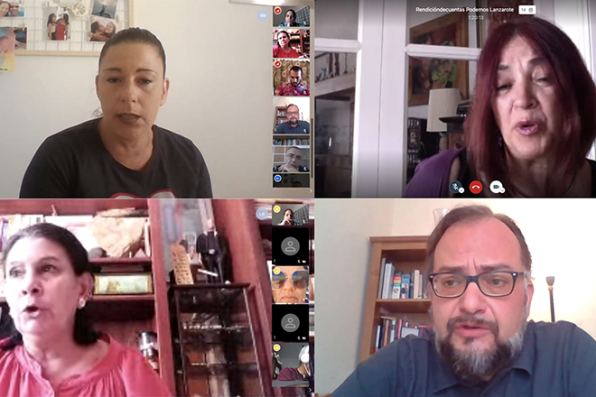 Durante la mañana del pasado sábado las personas inscritas en Podemos Lanzarote pudieron conocer de primera mano el trabajo realizado por sus representantes en el Cabildo, el Parlamento y el Gobierno de Canarias. El encuentro se realizó de forma telemática para respetar las normas de distanciamiento social decretadas por el estado de alarma para atajar la propagación del virus causante del COVID-19.