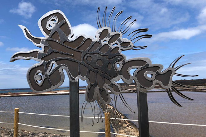 La empresa lanzaroteña, última salina en activo de la Isla, ha recordado que César Manrique diseñó en 1991, la ‘Artemia Salina’, un microorganismo, pequeño crustáceo que vive en ambientes hipersalinos y que sirve de alimento a las aves migratorias.