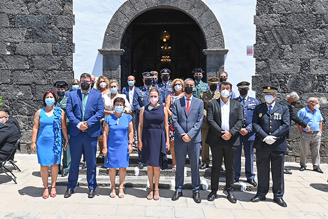 Junto a los miembros de la corporación municipal se encontraba la presidenta del Cabildo, María Dolores Corujo, la viceconsejera de Educación del Gobierno de Canarias, María Dolores Rodríguez, el pregonero de las fiestas y numerosas autoridades civiles y militares de todos los ámbitos, que quisieron sumarse a la celebración de este 24 de agosto.