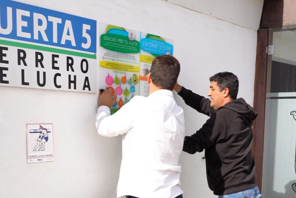 "Entras en un entorno seguro para la infancia y la adolescencia. Ningún tipo de violencia tiene cabida en el deporte". Ese mensaje y otros más específicos conforman los nuevos elementos visuales que ya están instalados en el campo de fútbol Manuel Arrocha García, en Puerto del Carmen, en el campo de fútbol Francisco Bermúdez Hernández "Pancho" y en todo el polideportivo municipal de Tías, especialmente en gradas, accesos, zonas de tránsito y entradas a vestuarios.