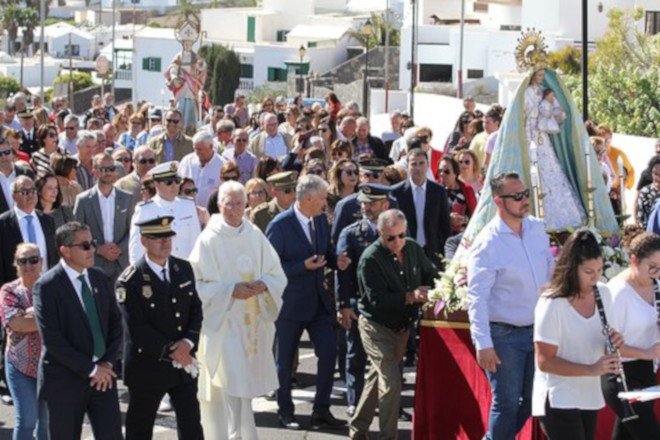 El municipio de Tías celebra estos días sus fiestas patronales en honor a Nuestra Señora de La Candelaria y San Blas, que llegó a su día grande este domingo, 2 de febrero, con la solemne función religiosa, acompañada del coro La Candelaria y la procesión junto a la Asociación Cultural Artística de Tías (Acuarti) y de la agrupación folclórica Gaida.