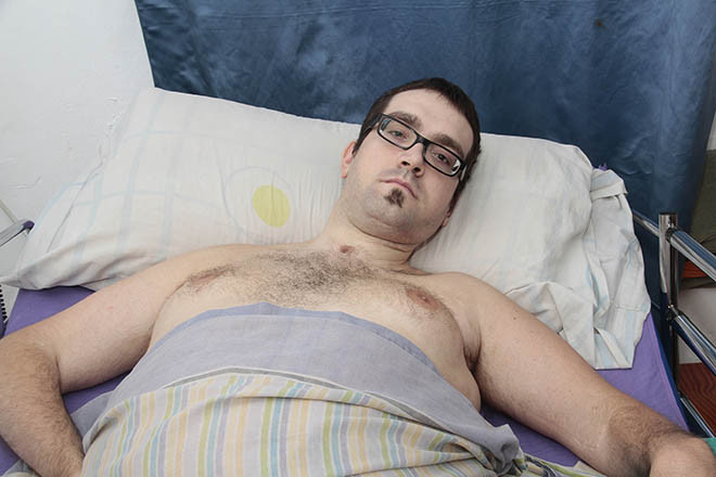 Desde que tuvo el accidente, las sesiones de rehabilitación han ido apareciendo y desapareciendo. Unos médicos dijeron que no había nada que hacer y otros le recomendaron que fuera a nadar y que hiciera rehabilitación. Desde mayo no le dan rehabilitación. “Los de la ambulancia se negaron a bajarme porque peso mucho”, dice. El único que puede con él, y a duras penas, es su hermano mayor, “pero ya tiene tres hernias discales y está todo el día pinchándose para el dolor”, dice Tana. Salió de casa a principios de diciembre al entierro de su abuela pero no sale de forma regular. Hay semanas que sale y otras que no.