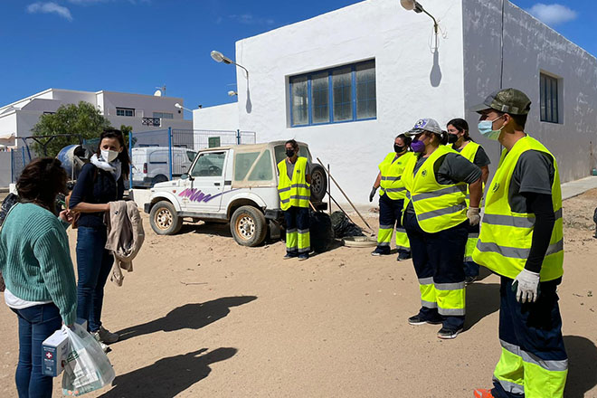 "El trabajo de estos operarios", destaca Nerea Santana, "se realiza con el máximo respeto al entorno natural de una isla única como La Graciosa y a las especies autóctonas que existen aquí y, por ello, las labores que se realizan interfieren lo mínimo posible en el medio. Además, los residuos, escombros y otros materiales de desecho son llevados a la planta de transferencia de La Graciosa para su correcto tratamiento y posterior reciclaje".
