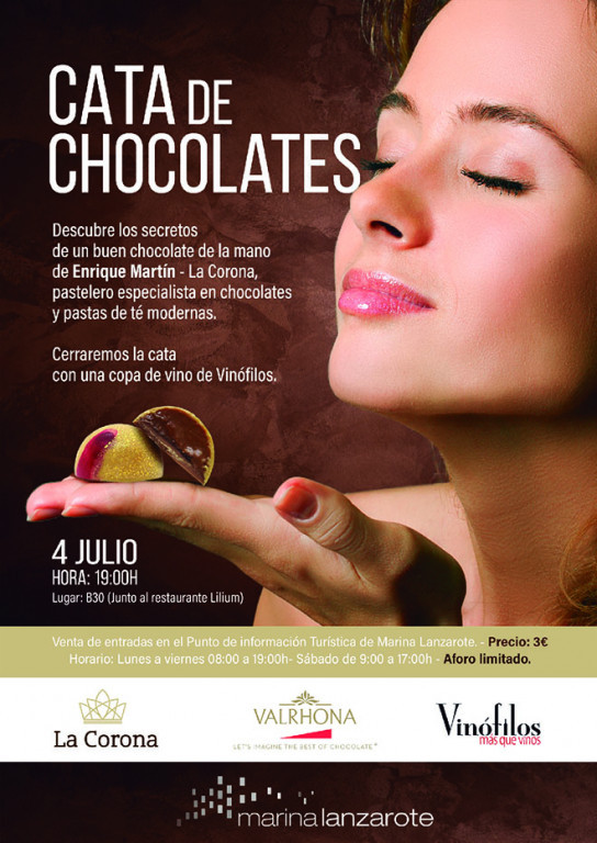 El jueves 4 de julio a las 19:00h, Enrique llevará a los asistentes a un viaje por los diferentes chocolates, enseñándonos a apreciar las diferencias de un buen chocolate. La jornada se rematará con una copa de vino de la mano de Vinófilos. Las entradas están a la venta a un precio de 3 euros en el Punto de Información Turística de Marina Lanzarote.
