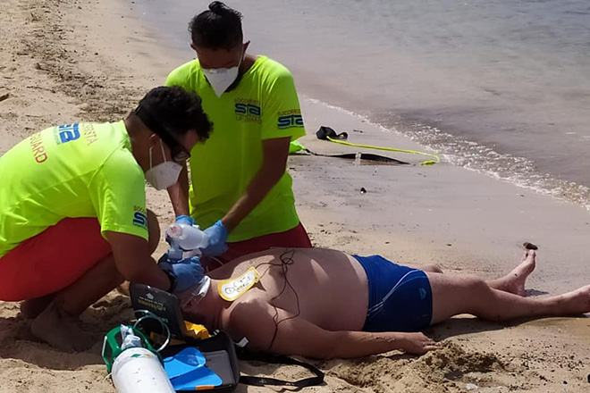 Arrecife se ha convertido en el primer municipio de Lanzarote en realizar un simulacro de salvamento y socorrismo en playas conejeras aplicando los protocolos sanitarios tras el covid 19.