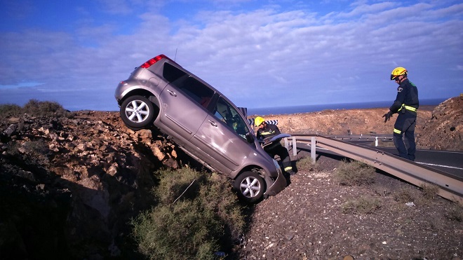 Los bomberos del Consorcio de Seguridad y Emergencias de Lanzarote tuvieron que intervenir para recuperar y asegurar el vehículo, ante el peligro de que pudiese arder.