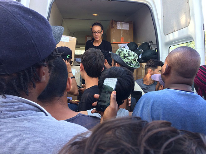 Ha estado trabajando y vuelve a trabajar, como voluntaria, con la ONG griega Attika (attikahumansupport.org) que reparte ropa y objetos para la higiene personal. Lo hacen en la puerta del campamento con un sistema que se organiza por whatsapp. “Los que llegan hasta allí han pasado mil penurias, han perdido todo su dinero, pero intentan mantener como sea el móvil”, dice Mar. Eso les permite comunicarse con sus familiares y enviar un mensaje a la ONG para transmitir sus necesidades. Las familias, iraquíes, sirias, afganas, pakistaníes o africanas de cualquier país, describen en ese mensaje a cada uno de sus miembros, su edad, sexo, talla y número de zapato.